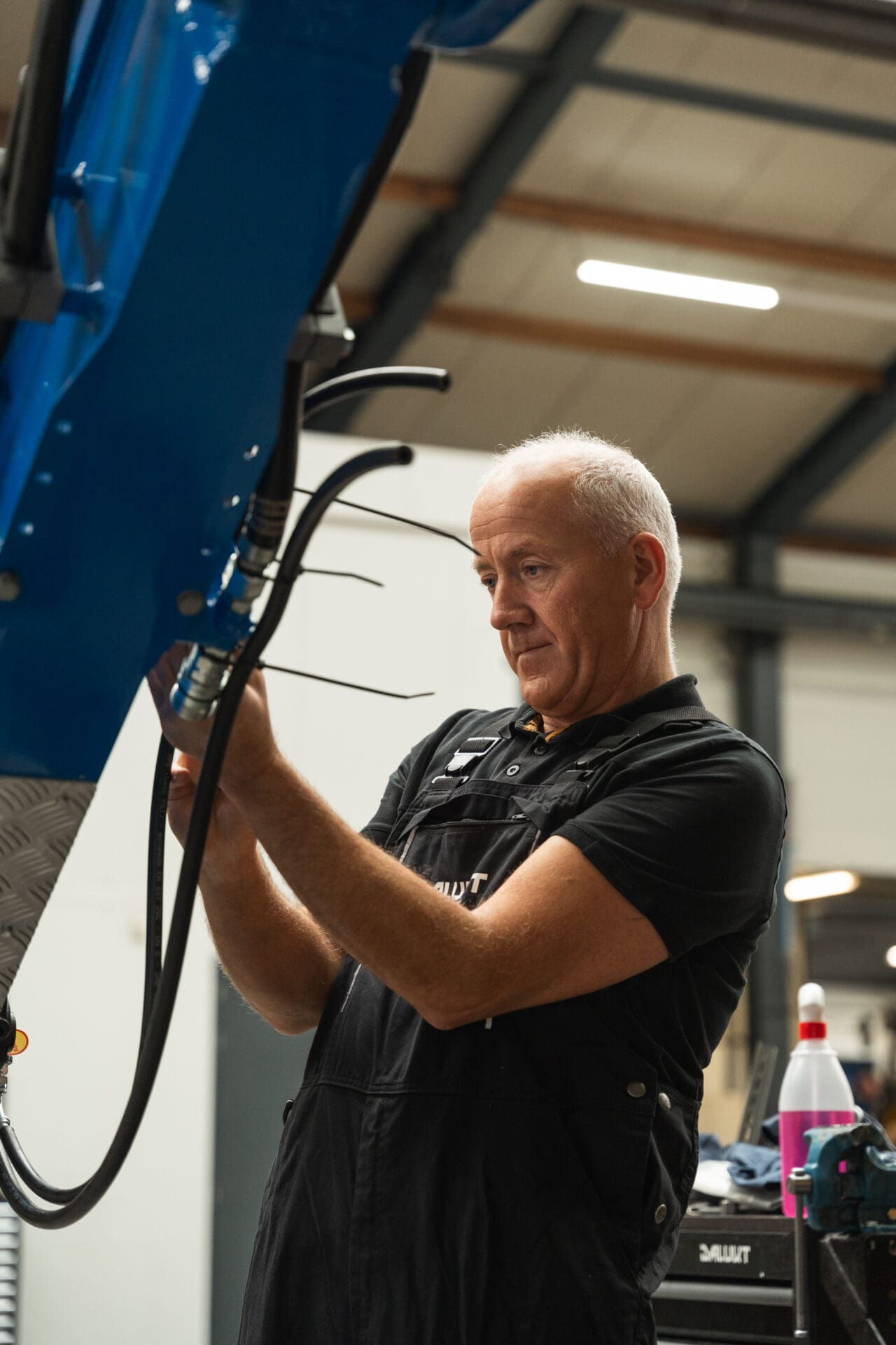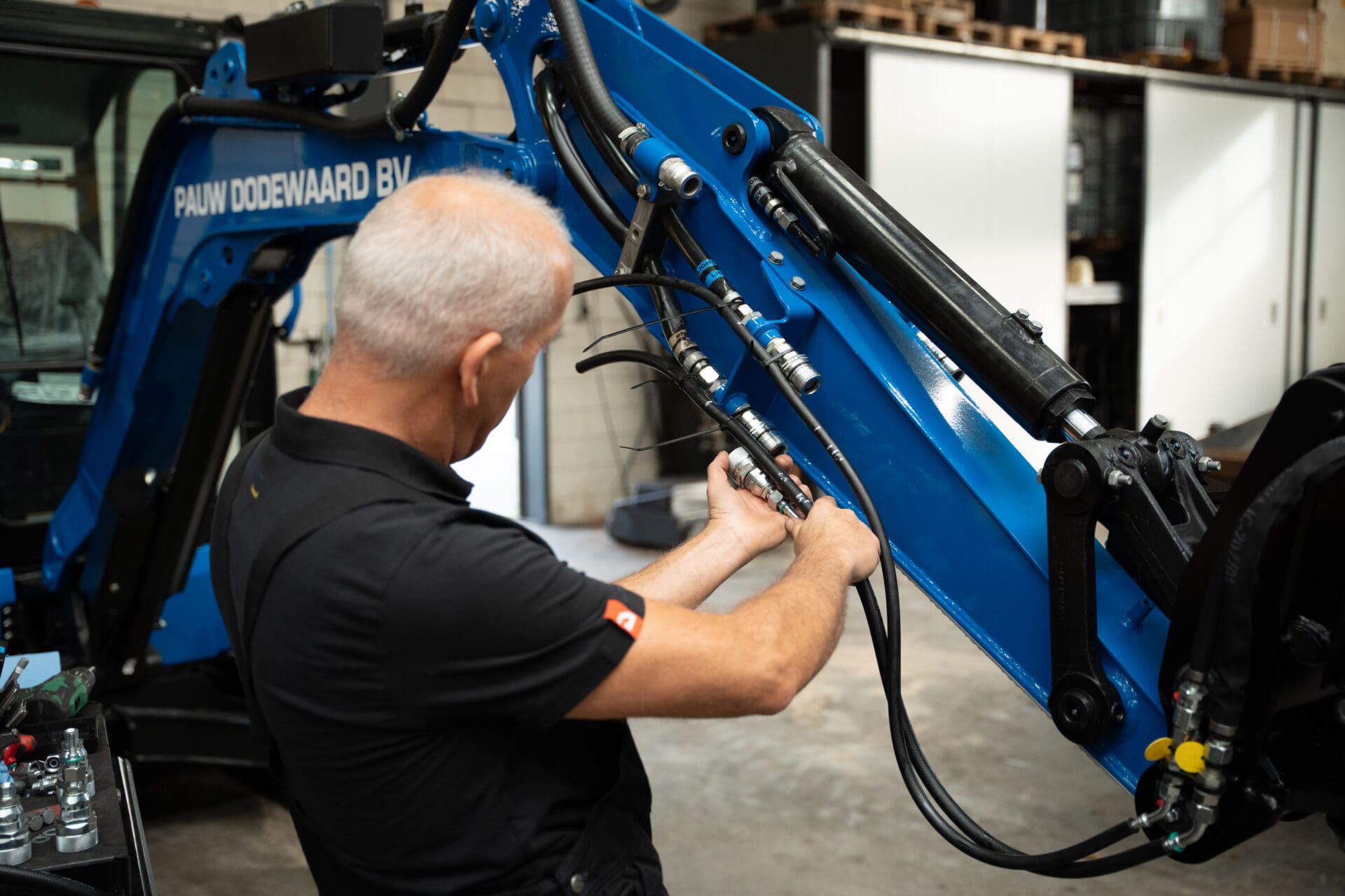 ‘Het mooiste is wanneer alles precies werkt zoals het hoort. Bijvoorbeeld een mini-graver met draaikantelstuk: de hydrauliek en elektrische aansluitingen correct installeren en zien dat het lukt. Of een verreiker waar de cabine in hoogte verstelbaar wordt gemaakt. Het geeft echt een goed gevoel om te zien wat je zelf hebt bereikt.’